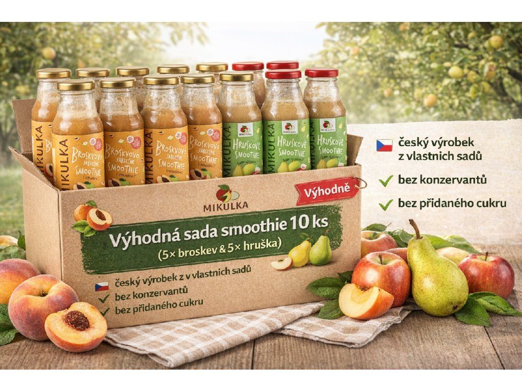 Vyzkoušejte naši výhodnou smoothie sadu, která spojuje to nejlepší z našeho ovoce a poctivého zpracování. Ideální jako rychlá svačina, lehká snídaně nebo zdravé doplnění energie během dne 🍑🍐